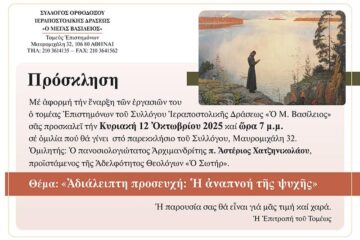 Μέ ἀφορμή τήν ἔναρξη τῶν ἐργασιῶν του ὁ τομέας Ἐπιστημόνων τοῦ Συλλόγου Ἱεραποστολικῆς Δράσεως «Ὁ Μ. Βασίλειος» σᾶς προσκαλεῖ ...