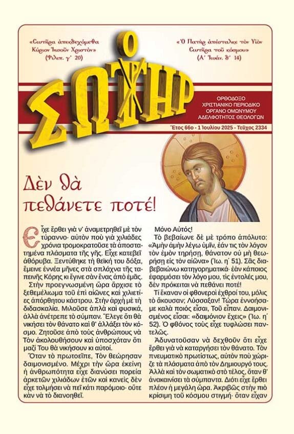 «Ο ΣΩΤΗΡ» ~ Τεῦχος 2334 ~ 1-7-2025