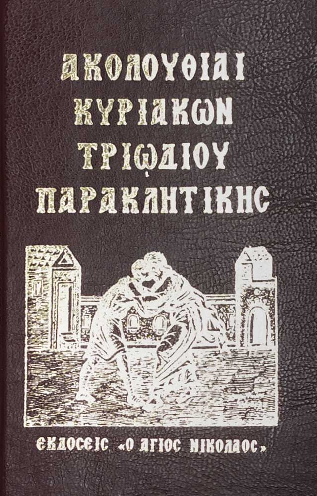 Η έκδοση αυτή περιέχει τα ψαλλόμενα στις ακολουθίες του Εσπερινού και του Όρθρου όλων των Κυριακών του Τριωδίου. Εύχρηστο, δίχρωμο με μεγάλα γράμματα.