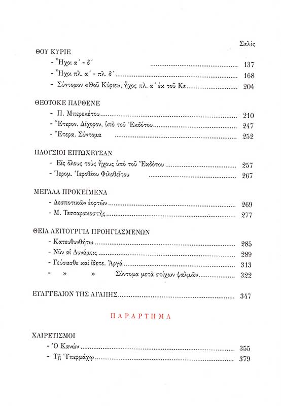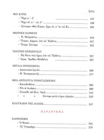 Πολυτελής πανόδετη έκδοση σε εύχρηστο σχήμα, με διχρωμία και σελιδοδείκτες, η οποία καλύπτει ένα μεγάλο κενό και προσπαθεί να διασώσει ζώσα την αθωνική μουσική παράδοση διακεκριμένων μελωδών, μουσικολόγων και ψαλμωδών, ώστε οι μελοποιημένοι ύμνοι να εμπλουτίσουν την λειτουργική μας παράδοση, να εμπνεύσουν την αγάπη και τον σεβασμό στη λογική λατρεία και ιερά υμνωδία και, τέλος, να γίνουν κτήμα και χρήσιμο καθημερινό βοήθημα των υπηρετών της ιεροψαλτικής.