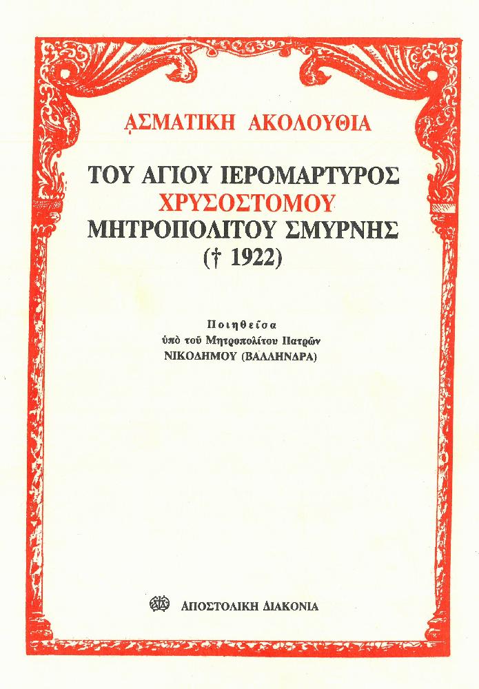 Ασματική Ακολουθία του Αγίου Ιερομάρτυρος Χρυσοστόμου Μητροπολίτου Σμύρνης (+1922)