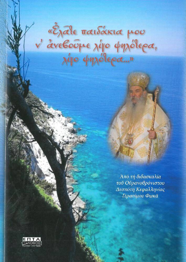 «Λίγο ψηλότερα παιδάκια μου, ν’ ανεβούμε λίγο ψηλότερα… Βέβαια, οι κορυφές θέλουν μόχθο, οι κορυφές των αξιών, του καθήκοντος, της θυσίας, θέλουν κόπο, θέλουν ιδρώτα, θέλουν αίμα, για να μας φέρουν στο φως, πάνω από τα βουνά τα χιονόδοξα. Ενώ τα πάθη, τα συμφέροντα, η φτήνια, είναι ευκολία, είναι κατηφοριά, είναι χαμοζωή. Κι εμείς επιλέγουμε …» (π. Γεράσιμος Φωκάς, από την παρουσίαση στο οπισθόφυλλο του βιβλίου