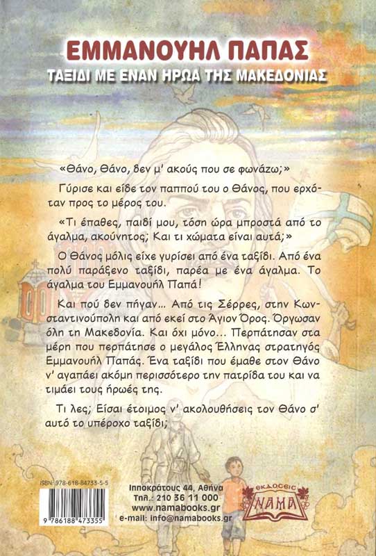 Και πού δεν πήγαν… Από τις Σέρρες, στην Κωνσταντινούπολη και από εκεί στο Άγιον Όρος. Όργωσαν όλη τη Μακεδονία. Και όχι μόνο… Περπάτησαν στα μέρη που περπάτησε ο μεγάλος Έλληνας στρατηγός Εμμανουήλ Παπάς. Ένα ταξίδι που έμαθε στον Θάνο ν’ αγαπάει ακόμη περισσότερο την πατρίδα του και να τιμάει τους ήρωές της.