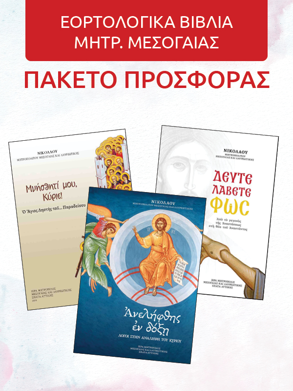 Τρία υπέροχα εορτολογικά βιβλία του μητροπολίτη Μεσογαίας και Λαυρεωτικής κ. Νικολάου σε πακέτο προσφοράς! Διαθέσιμο αποκλειστικά στο ηλεκτρονικό μας κατάστημα!