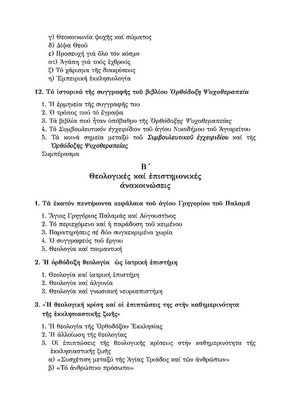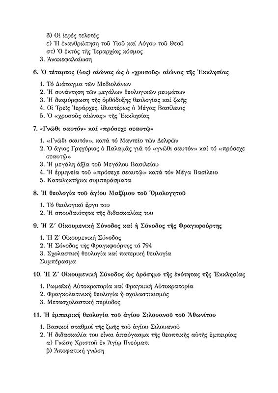 Η πρώτη ενότητα με τίτλο Θεολογικές ελλάμψεις περιλαμβάνει εισηγήσεις και ομιλίες για την αξία της θεολογίας των Πατέρων της Εκκλησίας.