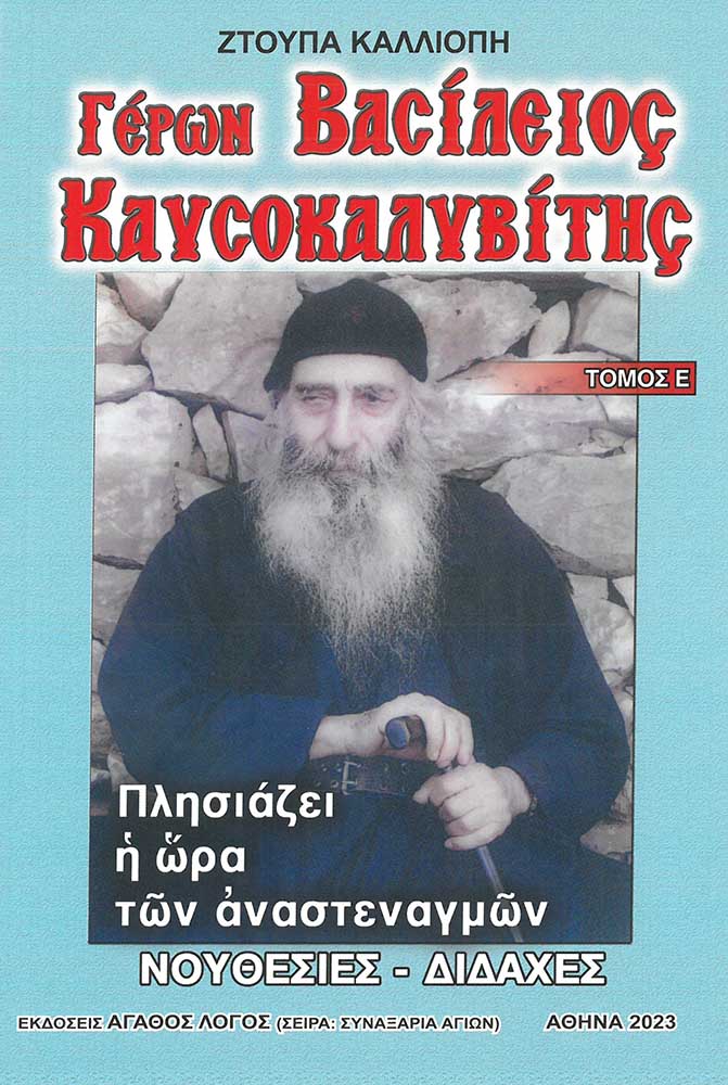 Ο πέμπτος τόμος των νουθεσιών και διδαχών του γέροντος Βασιλείου του Καυσοκαλυβίτη (Πλησιάζει η ώρα των αναστεναγμών) της σειράς ΣΥΝΑΞΑΡΙΑ ΑΓΙΩΝ.