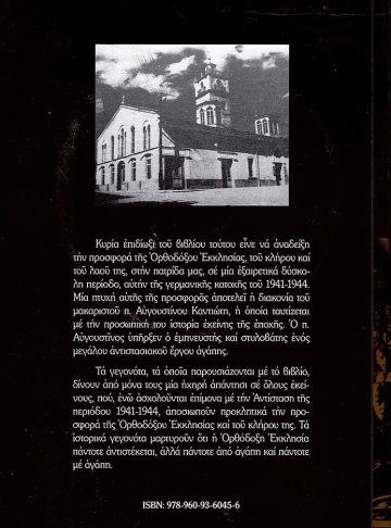 Ένα βιβλίο που αναδεικνύει την αντίσταση και την προσφορά της Ορθόδοξης Εκκλησίας, του κλήρου και του λαού της, στα εξαιρετικά δύσκολα χρόνια της Γερμανικής Κατοχής με έμφαση στη διακονία του τότε ιεροκήρυκα, αρχιμανδρίτη Αυγουστίνου Καντιώτη.