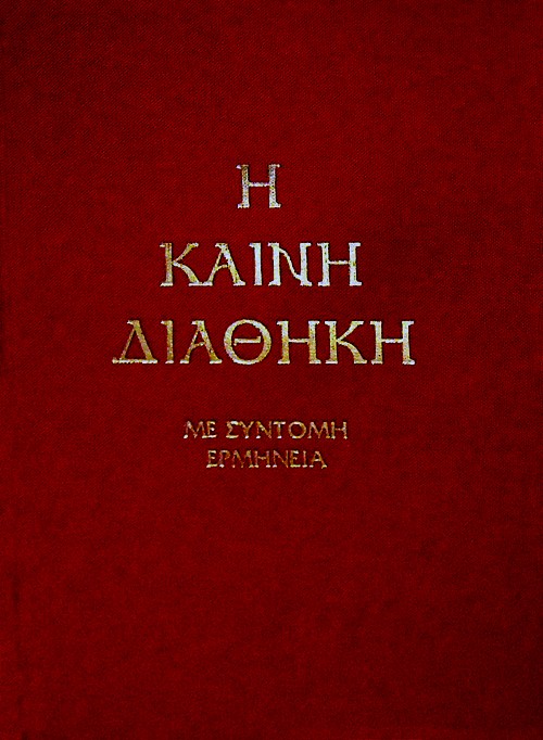 Η Καινή Διαθήκη με το πρωτότυπο κείμενο και παράλληλη σύντομη ερμηνεία στη δημοτική γλώσσα.