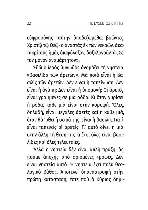 «Η νηστεία δεν είναι απλή πράξη αποχής από ορισμένες τροφές. Η νηστεία αποτελεί υπαναστροφή στην πρώτη «κατά φύσιν» κατάσταση του ανθρώπου, τότε που ο Κύριος δημιούργησε τον άνθρωπο.»