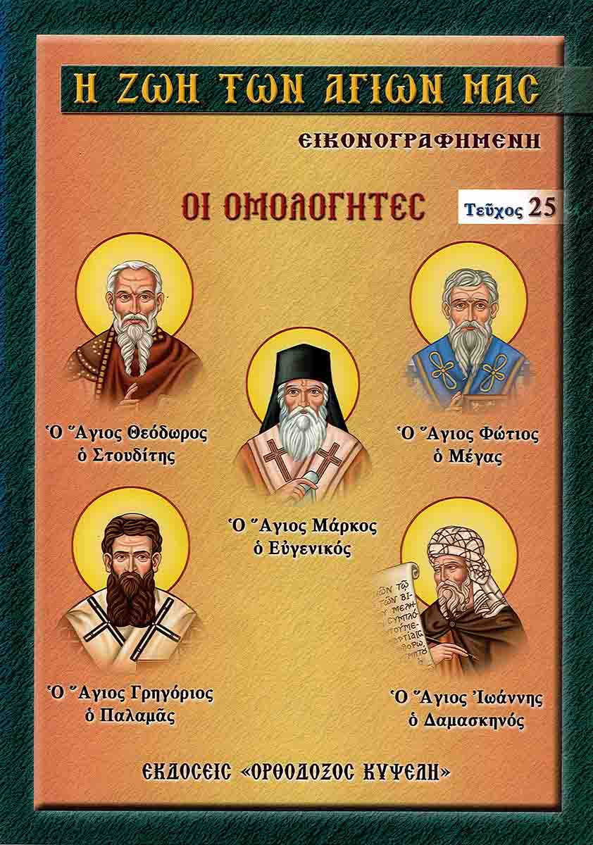 Εικονογραφημένοι βίοι αγίων για παιδιά: άγιος Θεόδωρος Στουδίτης, άγιος Φώτιος Μέγας, άγιος Μάρκος Ευγενικός, άγιος Γρηγόριος Παλαμάς, άγιος Ιωάννης Δαμασκηνός.