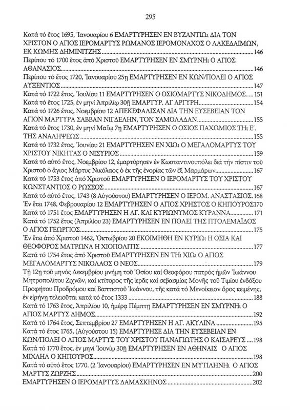 Απόδοση στη Νεοελληνική του έργου του αγίου Νικοδήμου του Αγιορείτη, που περιλαμβάνει τους βίους νεοφανών μαρτύρων της Εκκλησίας μας.