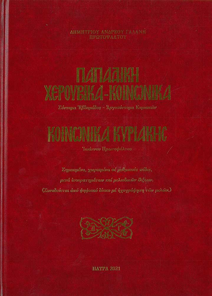 Παπαδική, Χερουβικά – Κοινωνικά Κυριακής (+CD) Χερουβικά και Κοινωνικά Σύντομα Εβδομάδας και Αργοσύντομα Κυριακών. Κοινωνικά Κυριακής Ιωάννου Πρωτοψάλτου, σημασμένα, χωρισμένα σε ρυθμικούς πόδες, μετά ισοκρατημάτων και μελωδικών έλξεων. Συνοδεύεται από cd με ηχογράφηση των μελών.
