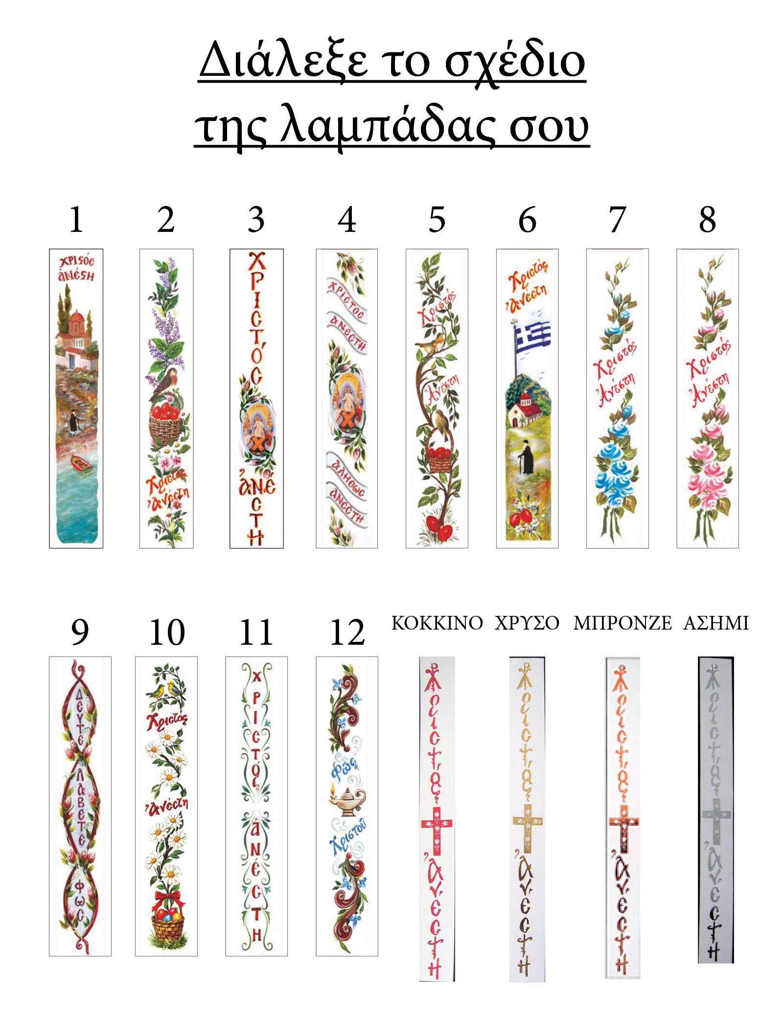 Πασχαλινή λαμπάδα κρεμ από αγνό κερί με δυνατότητα επιλογής από διαφορετικά σχέδια!