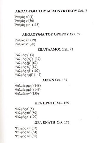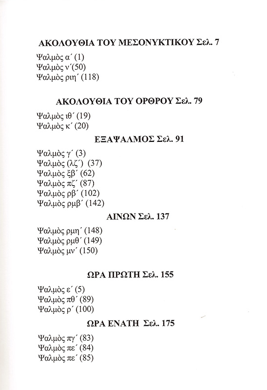 Περιέχει ερμηνεία στους ψαλμούς που χρησιμοποιούνται στις ακολουθίες της Εκκλησίας.