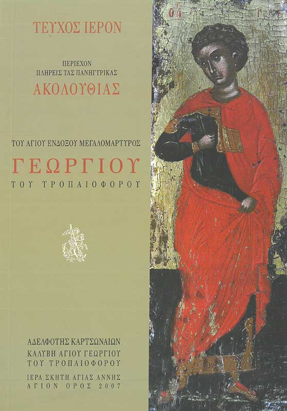 Τεύχος ιερόν περιέχον πλήρεις τας ακολουθίας του αγίου ενδόξου μεγαλομάρτυρος Γεωργίου του Τροπαιοφόρου