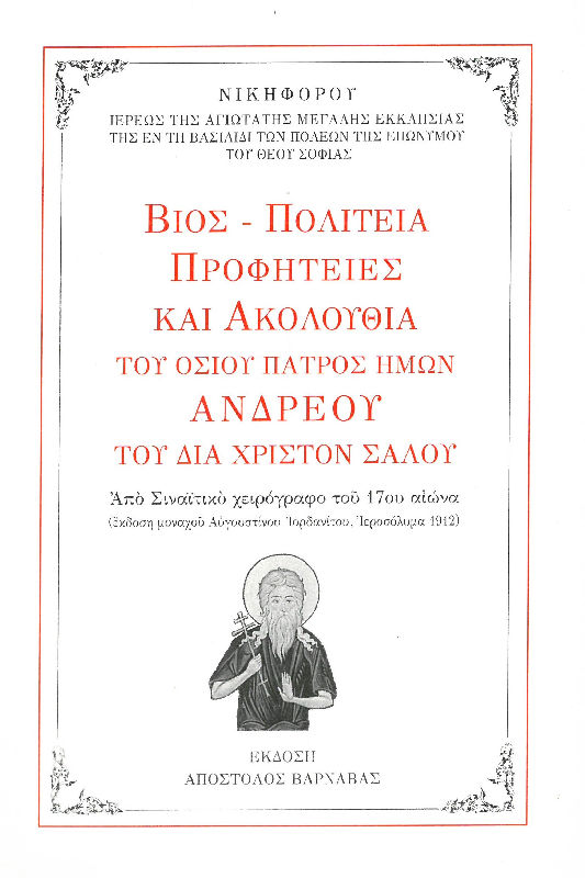 Βίος-πολιτεία προφητείες και ακολουθία του οσίου πατρός ημών Ανδρέου του δια Χριστόν σαλού