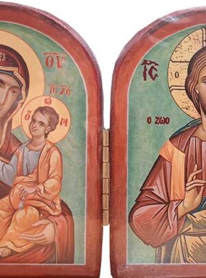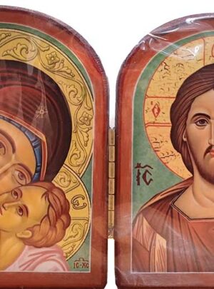 Ξύλινη εικόνα δίπτυχη. Στη μια πλευρά εικονίζεται ο Ιησούς Χριστός και στην άλλη η Παναγία η Θαλασσινή.